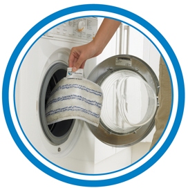 Terminata la pulizia il panno in microfibra si rimuove con un semplice gesto del piede e va direttamente in lavatrice a 30°. E' riutilizzabile fino a 100 volte!