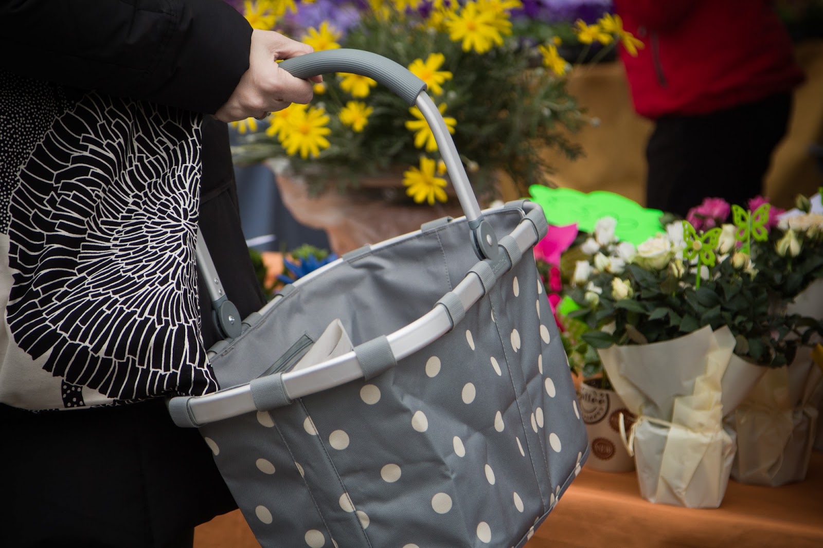 Non me l'aspettavo, ma vi assicuro che carrybag attira l'attenzione. Mentre camminavo per strada, ho intercettato molti sguardi curiosi rivolti al cestino, qualche commento (positivo) bisbigliato e ho addirittura incrociato due signore con le "cugine" shopper Reisenthel dello stesso colore grigio a pois!